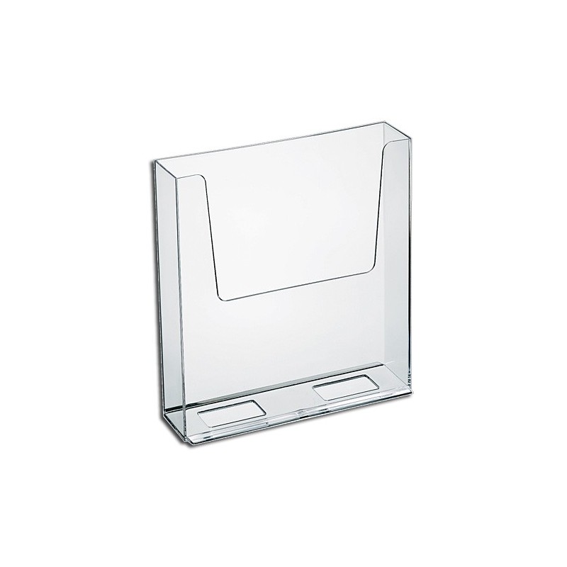 8 5/8" X 9 1/2 " X 1 3/4" Upright letter-size catalog, leaflet, flyer or catalog dispenser. Made of crystal clear styrene. For use on counter or table top.