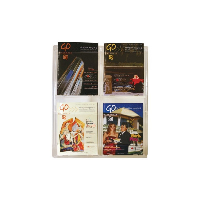 | 4 Pocket Magazine Holder: 11"w x 48 1/2"h x 2 1/8"d - (4) 8 1/2" x 11" pockets. |